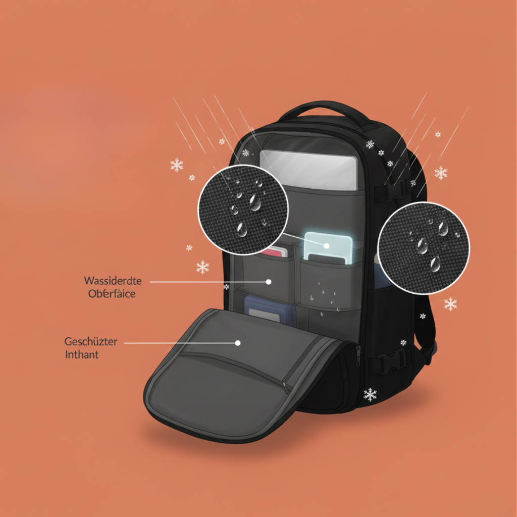 Er ist wasserabweisend — ideal für Regen & Schnee.