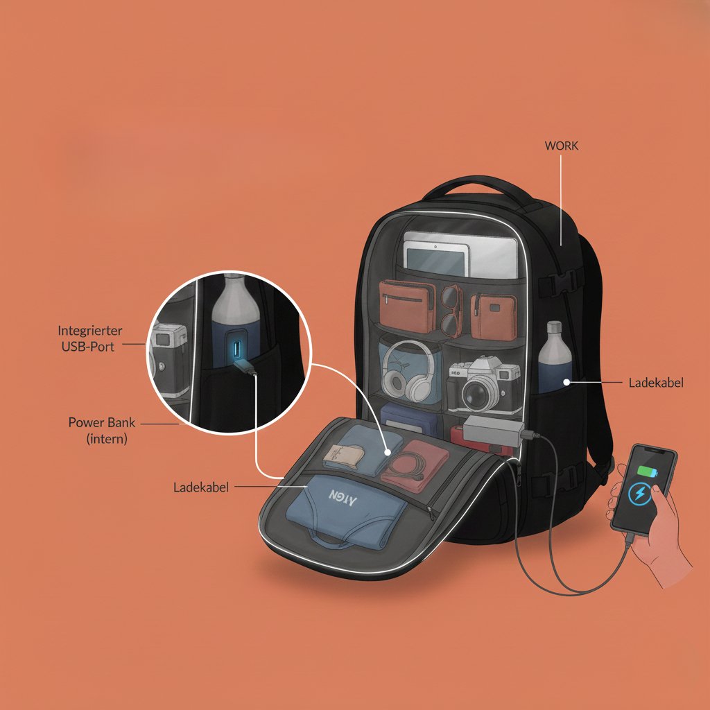 Perfekt für Studenten, Pendler, Fotografen, Reisende — alle, die unterwegs arbeiten.