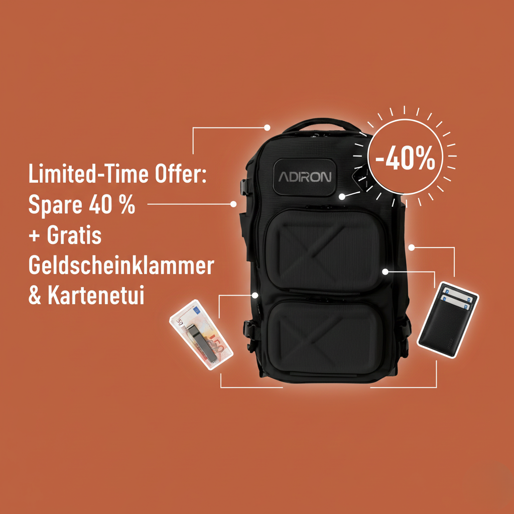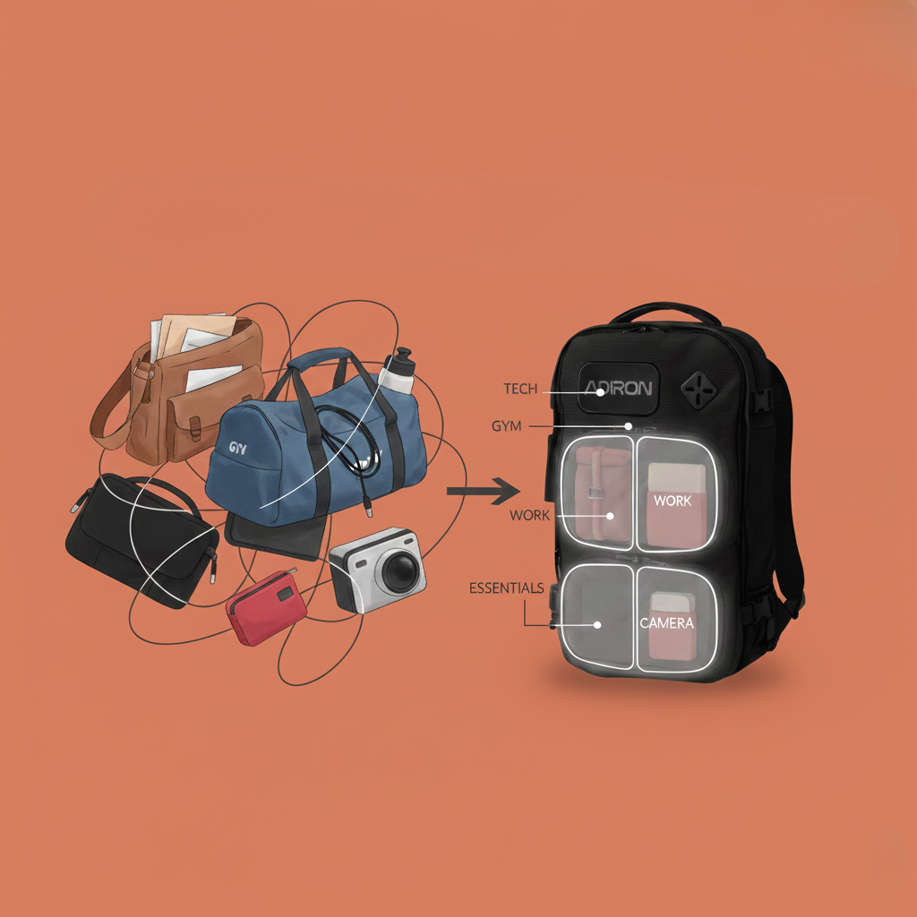 Chaos durch mehrere Taschen? Adiron ersetzt fünf — in nur einer einzigen Lösung.